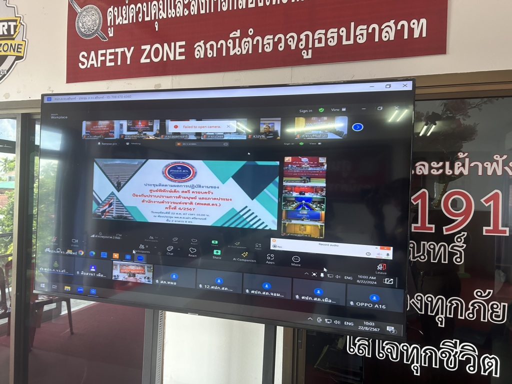 สภ.ปราสาท ภ.จว.สุรินทร์ 22 สิงหาคม 2567 โดย admin / ข่าวภารกิจผู้บังคับบัญชา,งานป้องกันปราบปราม เรียน ผู้บังคับบัญชา วันนี้ ( 22 ส.ค.67) เวลา 10.00น. ศปก.สภ.ปราสาท ขอรายงานผู้ร่วมเฝ้าฟังการประชุมทางไกลผ่านจอภาพ (Video Conference) ศพดส. ณ ศปก.สภ.ปราสาท ดังนี้1.พ.ต.อ.ยศศักดิ์ โพธิ์สุวรรณ ผกก.สภ.ปราสาาท เป็นประธานเฝ้าฟังการประชุมฯ2.ส.ต.ต.ชัยวัฒน์ ทองผาย ผบ.หมู่(ป.)สภ.ปราสาทธุรการสืบสวนร่วมเฝ้าฟัง3.ส.ต.ต.ปฏิพัทธ์ สำราญสุข ผบ. หมู่ฯ เจ้าหน้าที่เทคโนฯ ประจำ ศปก. โทร.0612905307จึงเรียนมาเพื่อโปรดทราบ Facebook iconFacebookTwitter iconTwitterLINE iconLine