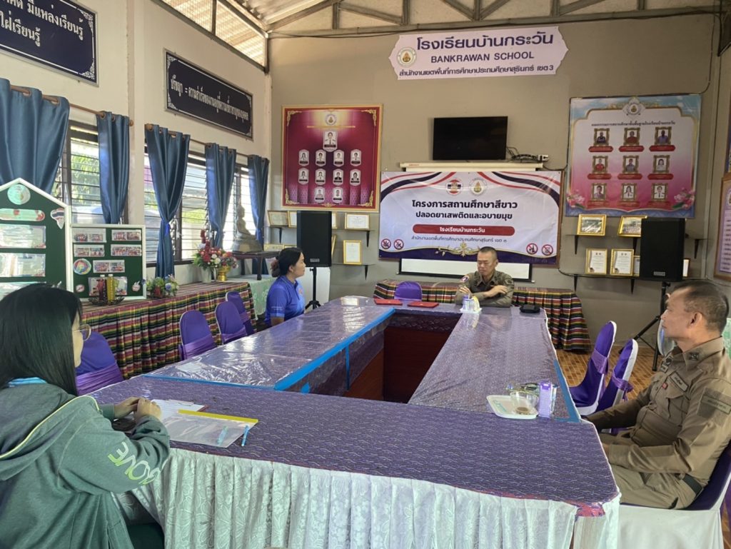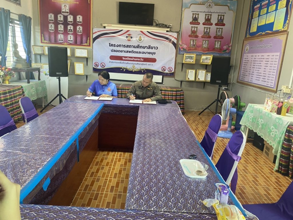 สภ.ปราสาท ภ.จว.สุรินทร์ 4 ธันวาคม 2567 โดย admin / ข่าวภารกิจผู้บังคับบัญชา,งานป้องกันปราบปราม เรียนผู้บังคับบัญชาสภ.ปราสาท ภ.จว.สุรินทร์ขอรายงานการปฏิบัติดังนี้ วันนี้(4 ธค.67) เวลา 10.00 น. พ.ต.อ.ยศศักดิ์ โพธิ์สุวรรณ ผกก.สภ.ปราสาท พ.ต.ต.วรวิทย์ พบบุญ สวป.(ชส) สภ.ปราสาท ได้ร่วมลงนามข้อตกลง(MOU) กับผู้บริหารสถานศึกษาโรงเรียนบ้านกระวัน ต.หนองใหญ่ อ.ปราสาท จ.สุรินทร์ ตามโครงการสถานศึกษาสีขาวปลอดยาเสพติดและอบายมุขจึงเรียนมาเพื่อโปรดทราบ Facebook iconFacebookTwitter iconTwitterLINE iconLine