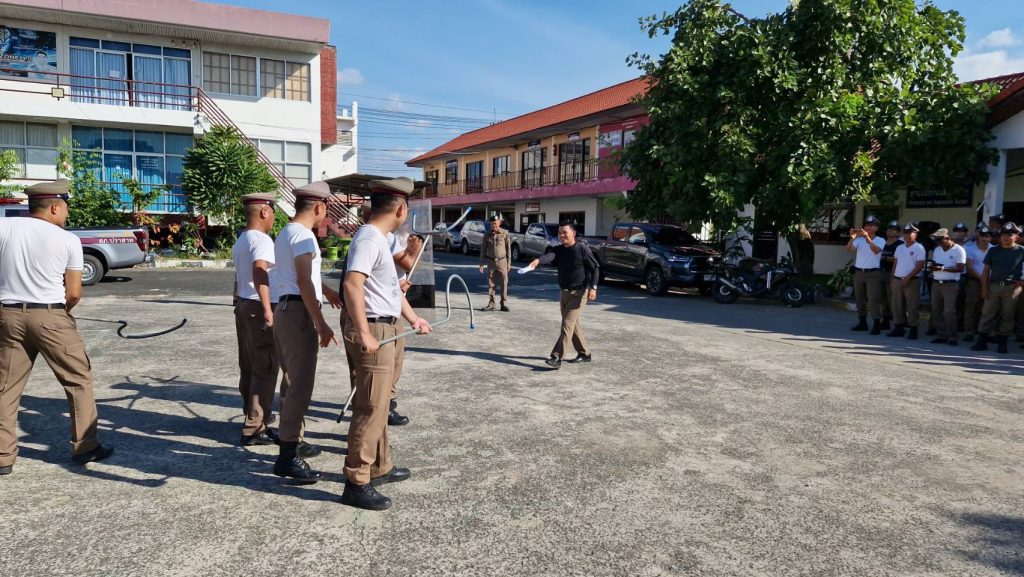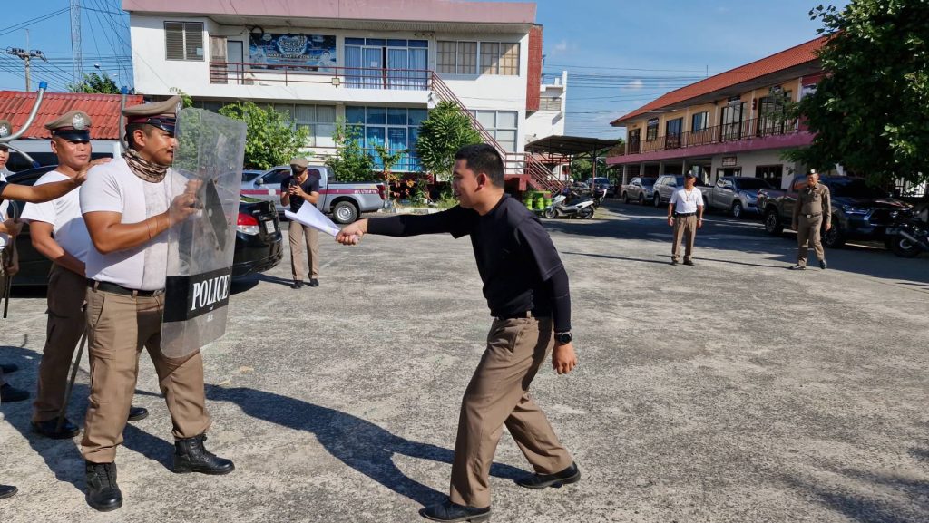 สภ.ปราสาท ภ.จว.สุรินทร์ 6 ธันวาคม 2567 โดย admin / ข่าวภารกิจผู้บังคับบัญชา เรียน ผู้บังคับบัญชา– ตามข้อสั่งการของ พล.ต.ท.วัฒนา ยี่จีน รรท.ผบช.ภ.3 เมื่อวันที่ 2 ธ.ค.2567 เวลา 13.30 น. ณ ห้องประชุมสุรนารายณ์ ศฝร.ภ.3 นั้นวันนี้ 6 ธ.ค.2567 เวลา 14.30 น.พ.ต.อ.ยศศักดิ์ โพธิ์สุวรรณ ผกก.สภ.ปราสาท พร้อมด้วย ข้าราชการตำรวจ สภ.ปราสาทร่วมทำการฝึกประจำสัปดาห์และฝึกทบทวนยุทธวิธีตำรวจ เพื่อเตรียมความพร้อมในการปฏิบัติงาน การฝึกระเบียบแถว การใช้ไม้ง่ามระงับเหตุ การจับกุมผู้คลุ้มคลั่ง โดยจำลองเหตุการณ์สมมุติ ให้เกิดประสิทธิภาพในการปฏิบัติหน้าที่ ตามข้อสั่งการฯ ณ ลานด้านหลัง สภ.ปราสาท อ.ปราสาท จ.สุรินทร์ จึงเรียนมาเพื่อโปรดทราบ Facebook iconFacebookTwitter iconTwitterLINE iconLine