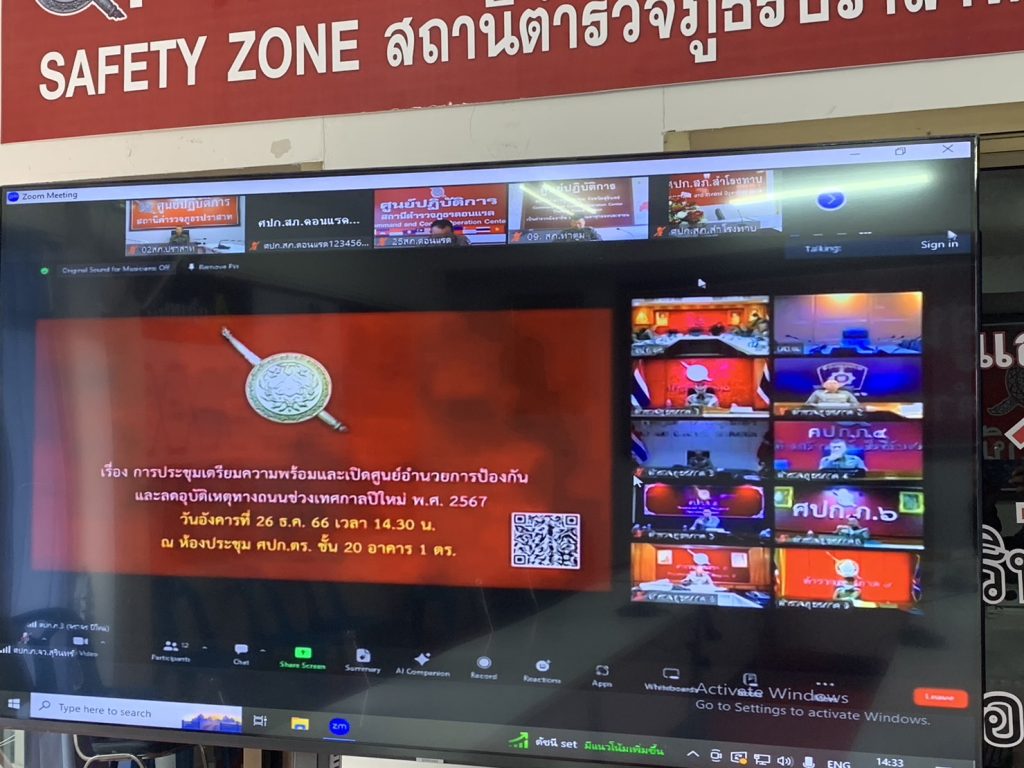 สภ.ปราสาท ภ.จว.สุรินทร์ 26 ธันวาคม 2566 โดย admin / ข่าวภารกิจผู้บังคับบัญชา วันนี้ (26 ธ.ค.2566 ) เวลา 14.30 น. ศปก.สภ.ปราสาท ขอรายงานผู้เข้าร่วมประชุมเปิดศูนย์จราจรปีใหม่ 2567 ผ่านระบบทางไกล (ระบบzoom) ดังนี้ 1.พ.ต.อ.ยศศักดิ์ โพธิ์สุวรรณผกก.สภ.ปราสาท เป็นประธานการประชุมฯ 2.พ.ต.ท.เทิด ธรรมะ รอง ผกก.ป.สภ.ปราสาท ร่วมเฝ้าฟังฯ 3.พ.ต.ต.ศุภณัฐ ขยันดี สวป.สภ.ปราสาท ร่วมเฝ้าฟังฯ Facebook iconFacebookTwitter iconTwitterLINE iconLine