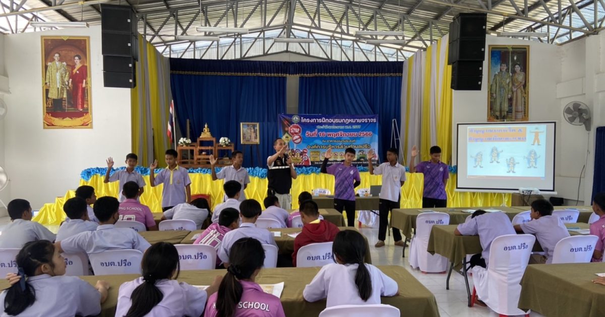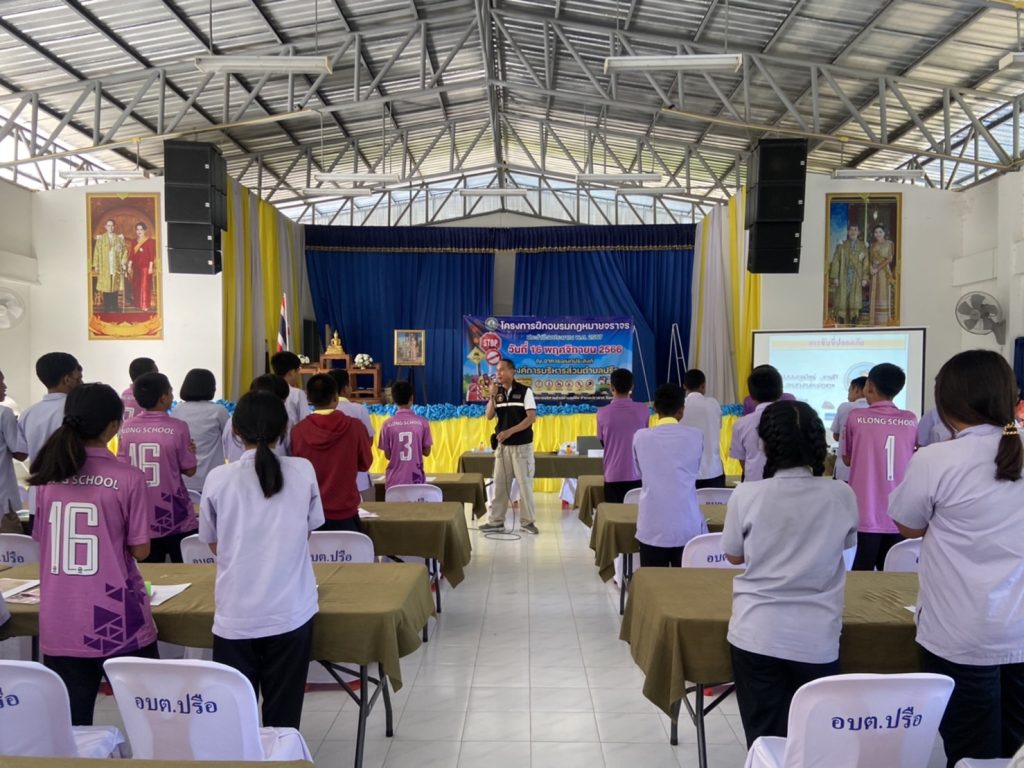สภ.ปราสาท ภ.จว.สุรินทร์ 29 พฤศจิกายน 2566 โดย admin / ข่าวประชาสัมพันธ์,ข่าวกิจกรรม • วันที่ 16 พ.ย.2566 เวลา 09.00-11.00 น. ร.ต.อ.ภานุวิชญ์ ยานศิริ รอง สว.ธร.สภ.ปราสาท ส.ต.ต.ชัยวัฒน์ ทองผาย ผบ.หมู(ป)ฯ ได้ร่วมเป็นวิทยากรให้ความรู้แก่นักเรียนบ้านคลอง ที่เข้าร่วมโครงการฝึกอบรมกฎหมายจราจร เพื่อเป็นความรู้และแนวทางในการปฎิบัติในการใช้รถใช้ถนนอย่างปลอดภัย จำนวน 51 คน ณ อาคารเอนกประสงค์ตำบลปรือ ม.1 ต.ปรือ อ.ปราสาท จ.สุรินทร์ Facebook iconFacebookTwitter iconTwitterLINE iconLine