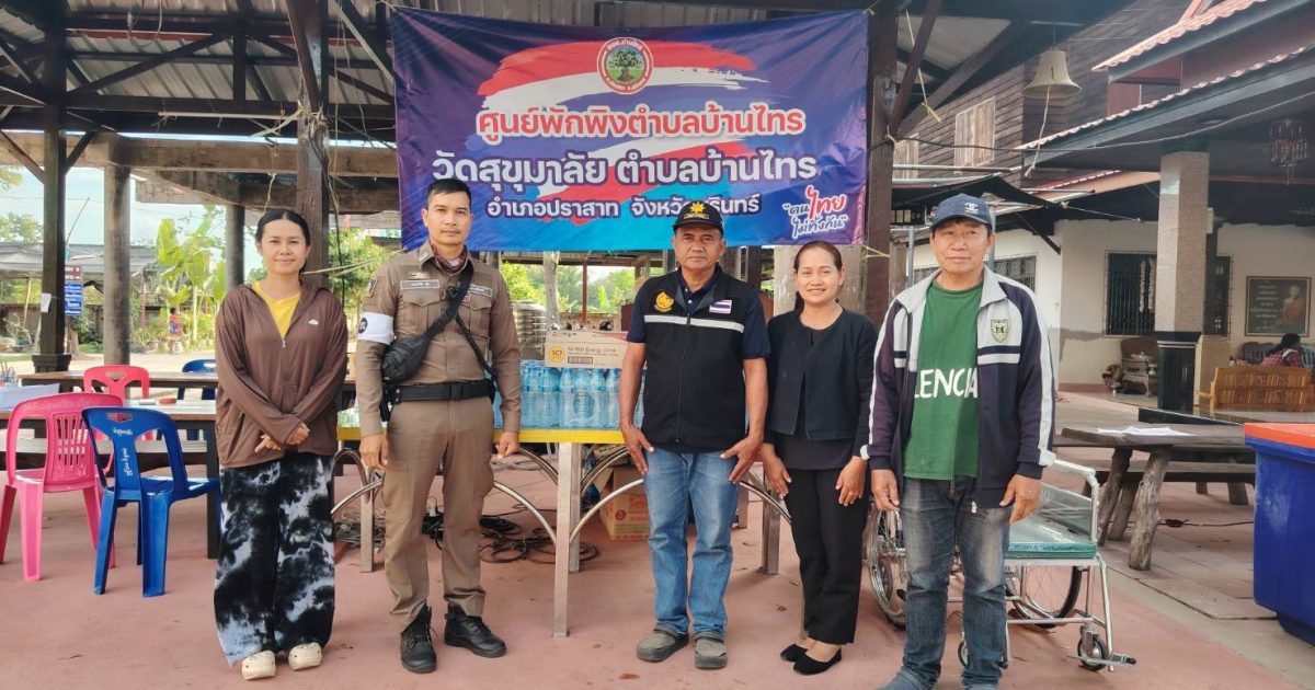 สายตรวจ ต.บ้านไทร ว.4 ตรวจเยี่ยมและมอบเครื่องดื่ม ศูนย์พักพิงชั่วคราว อ.ปราสาท  ไม่มีต่างด้าว
