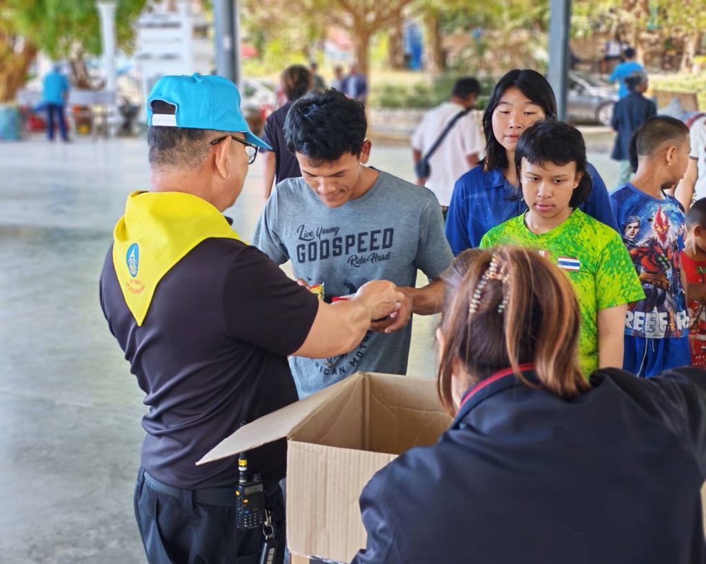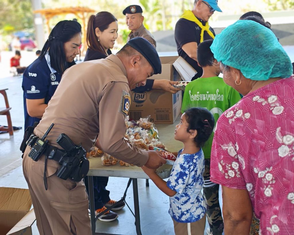 ร่วมมอบสิ่งของบริจาคโดยมีพล.ท.ชยพณัฐ (วิริรัตน์)