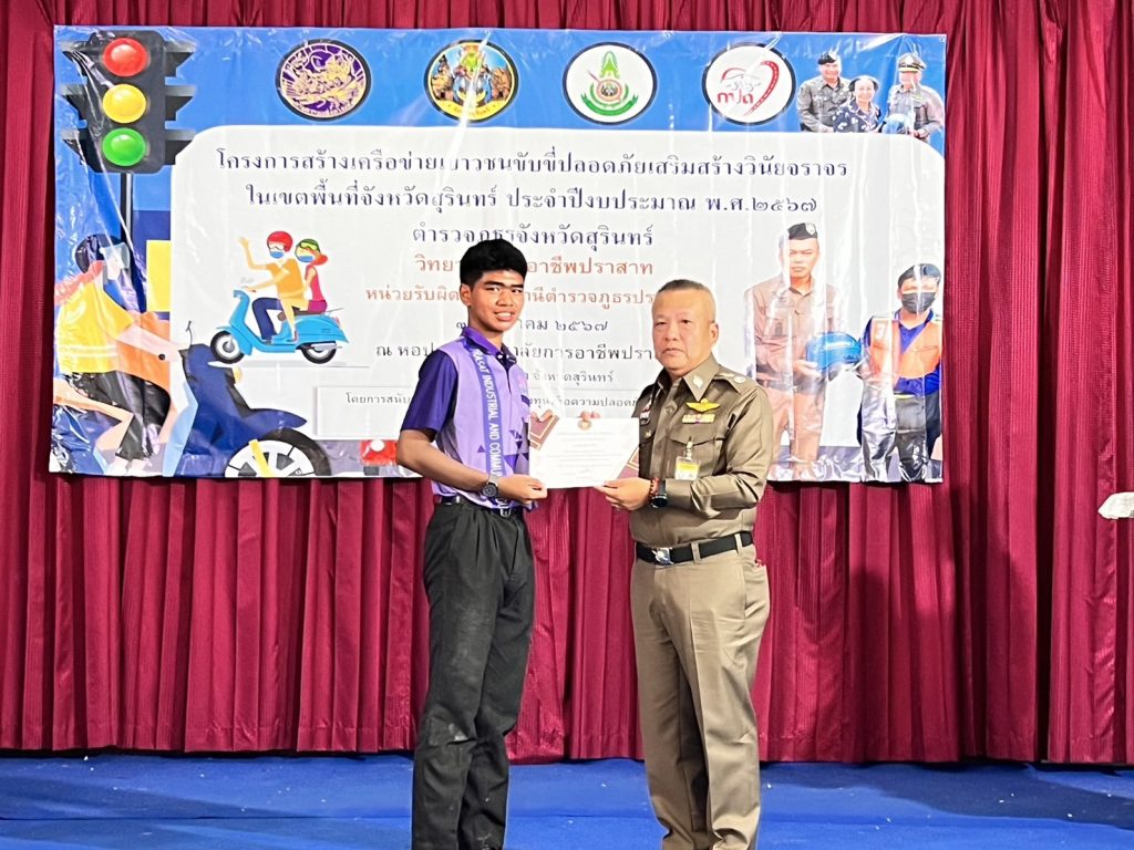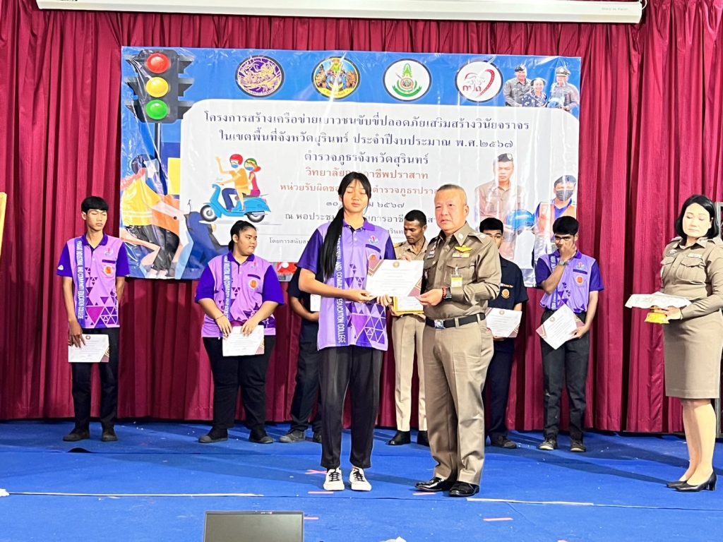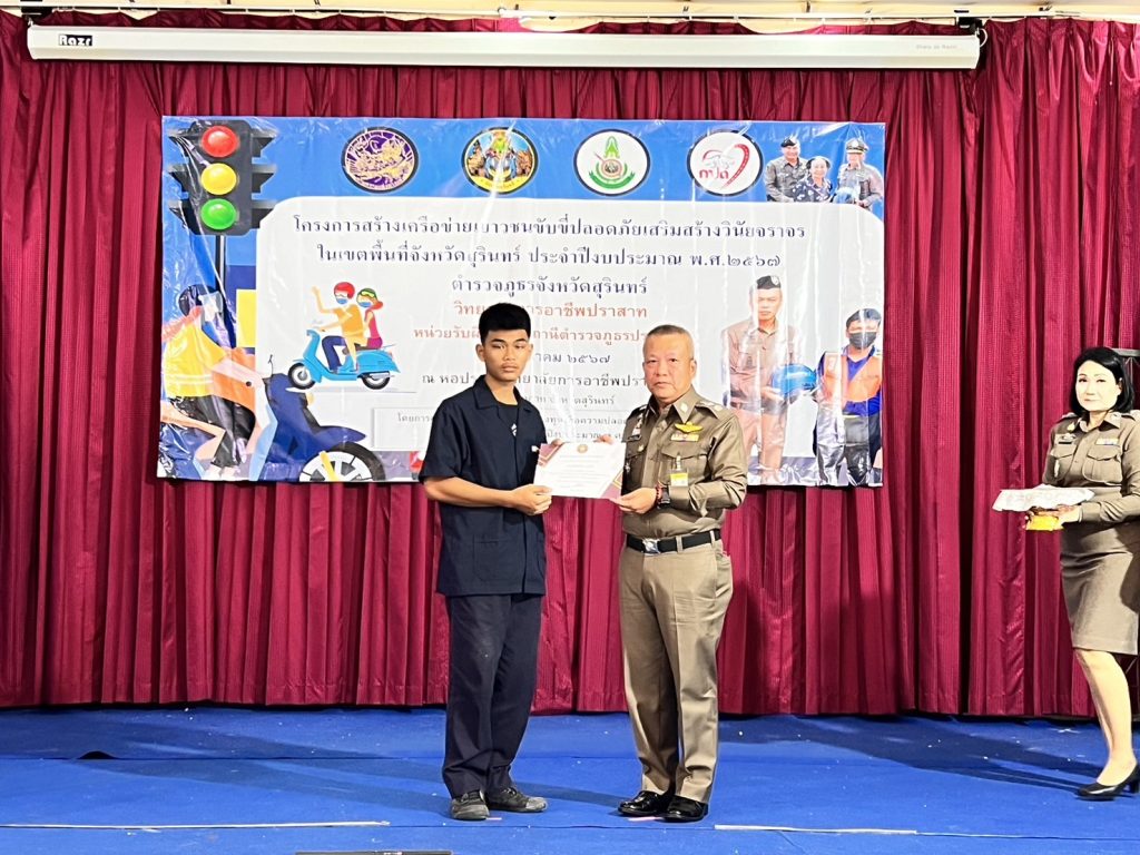 โครงการสร้างเครือข่ายเยาวชน ขับขี่ปลอดภัย เสริมสร้างวินัยจราจร ในเขตพื้นที่จังหวัดสุรินทร์ ประจำปีงบประมาณ พ.ศ.2567 (เขตพื้นที่ สภ.ปราสาท)