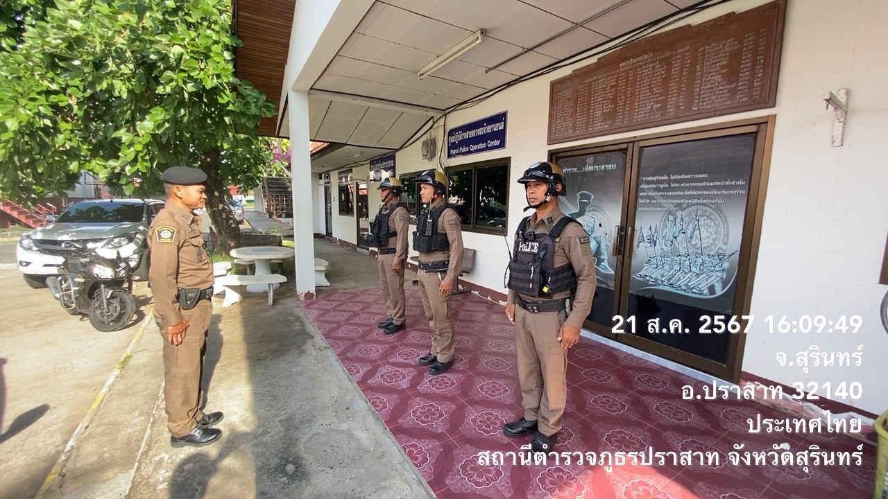 เรียนผู้บังคับบัญชาสภ.ปราสาท จว.สุรินทร์ วันที่ 21 สิงหาคม 2567 เวลา 09.00 น. ร.ต.ท.เจตนา ประไวย์