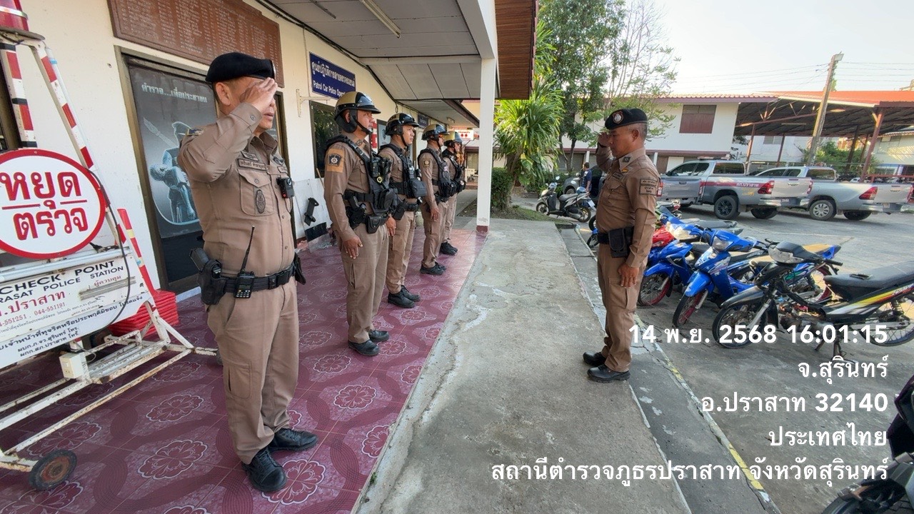 สภ.ปราสาท ภ.จว.สุรินทร์ วันที่ 16 พ.ย. 68 เวลา 00.01 น.ผู้ปล่อยแถว : ร.ต.อ.ชาตรี ชูชีวา รอง สวป.สภ.ป