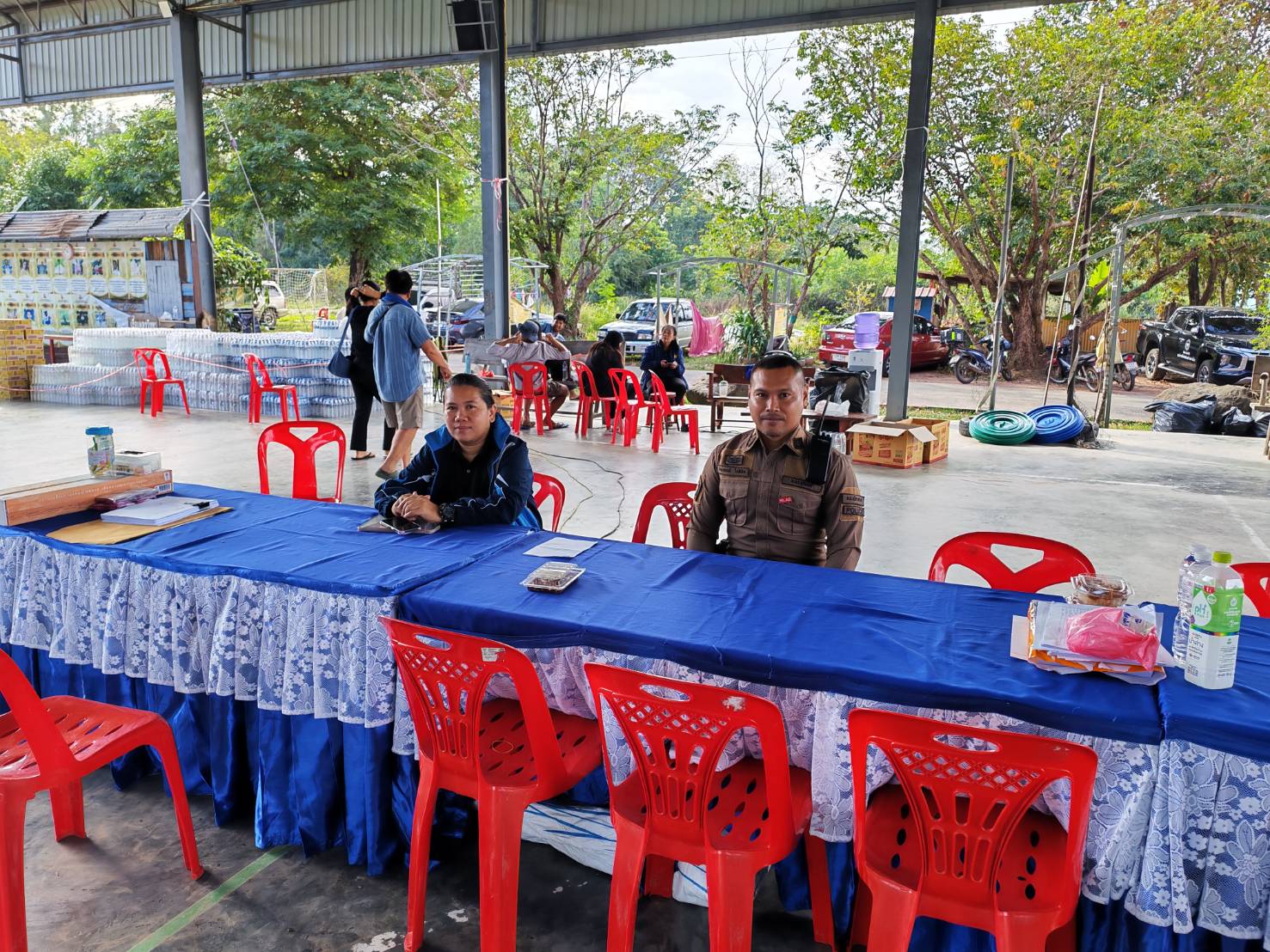 เรียนผู้บังคับบัญชา สายตรวจตำบลตาเบา ว.4 ตรวจเยี่ยมศูนย์พักพิง จุดวัดอัมรินทรทราวารี และ โรงเรียนอัม