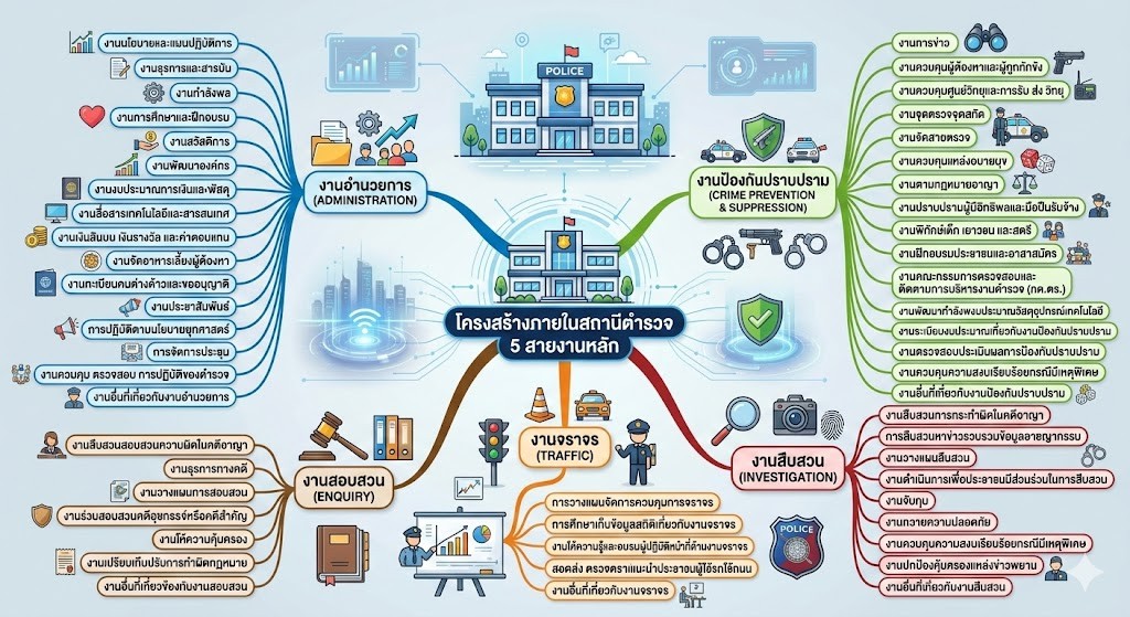 โครงสร้างภายในสถานีตำรวจ 5 สายงานหลัก