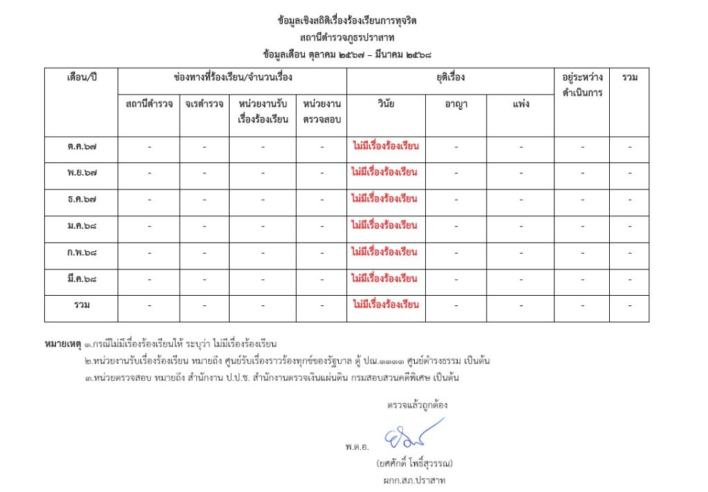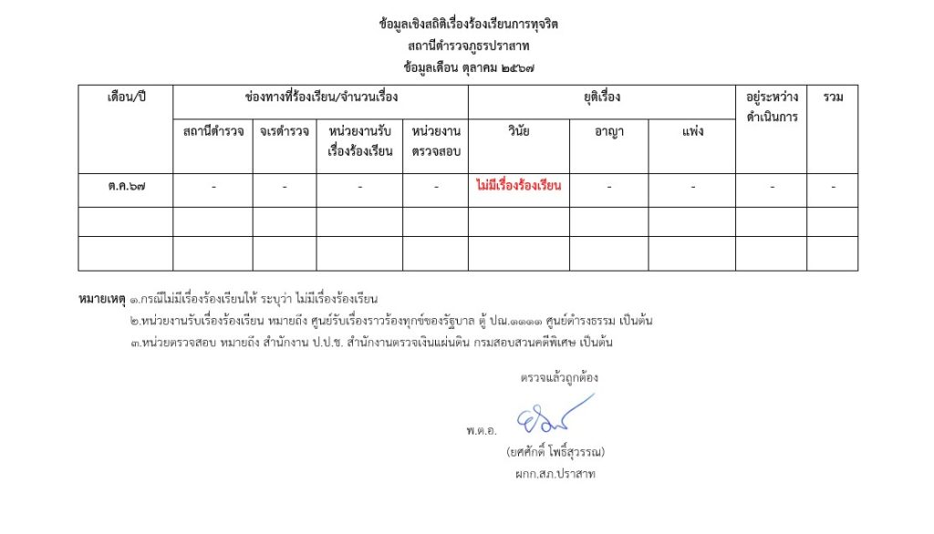 ต.ค.67 ข้อมูลเชิงสถิติเรื่องร้องเรียนการทุจริต