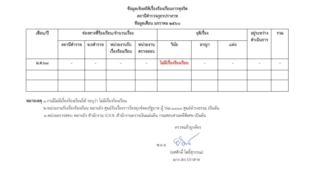 ม.ค.68 ข้อมูลเชิงสถิติเรื่องร้องเรียนการทุจริต