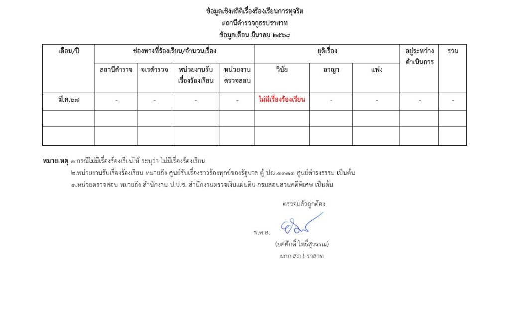 มี.ค.68 ข้อมูลเชิงสถิติเรื่องร้องเรียนการทุจริต