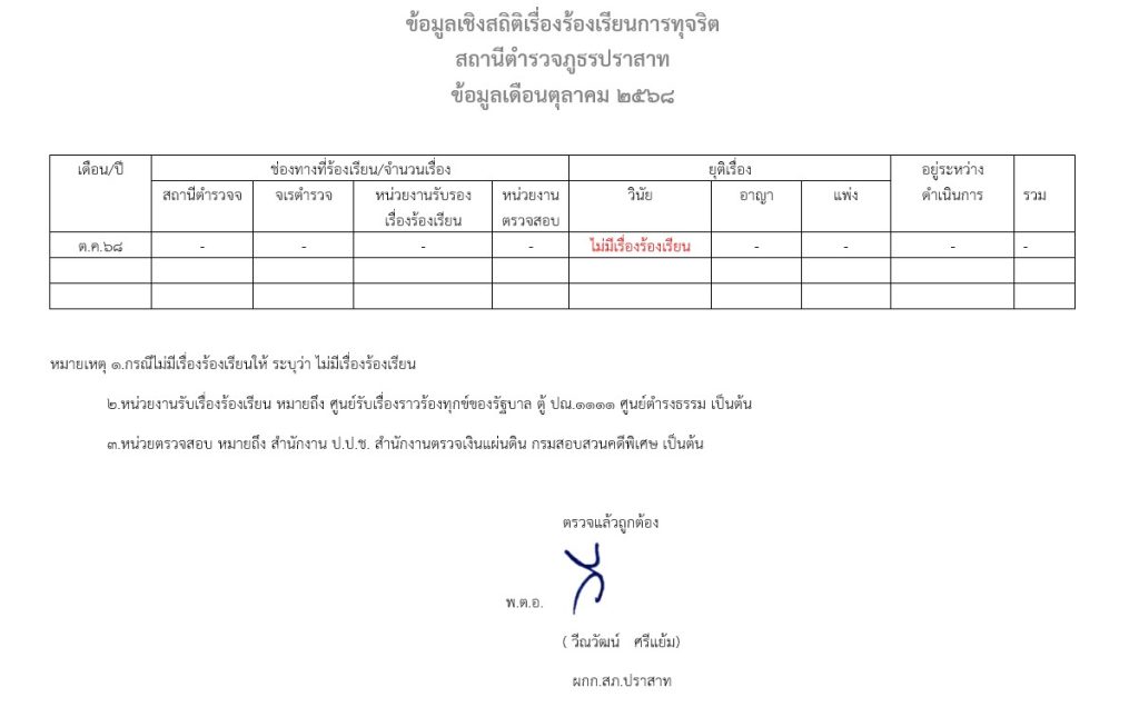 ต.ค.สถิติเรื่องร้องเรียนการทุจริต