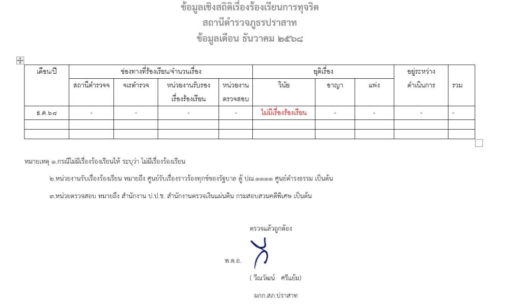 ธ.ค.สถิติเรื่องร้องเรียนการทุจริต
