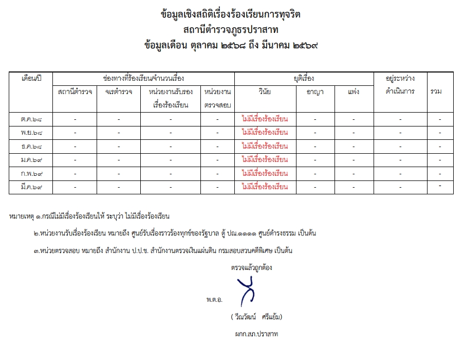 พ.ย.สถิติเรื่องร้องเรียนการทุจริต