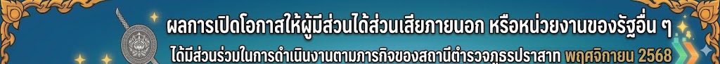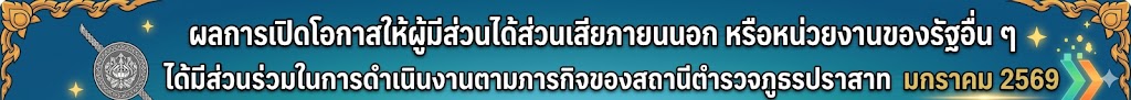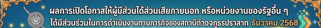 ผลการเปิดโอกาสให้ผู้มีส่วนได้ส่วนเสียภายนอก หรือหน่วยงานของรัฐอื่น ๆ ได้มีส่วนร่วมในการดำเนินงานตามภารกิจของสถานีตำรวจภูธรปราสาท ปีงบประมาณ พ.ศ. 2569
