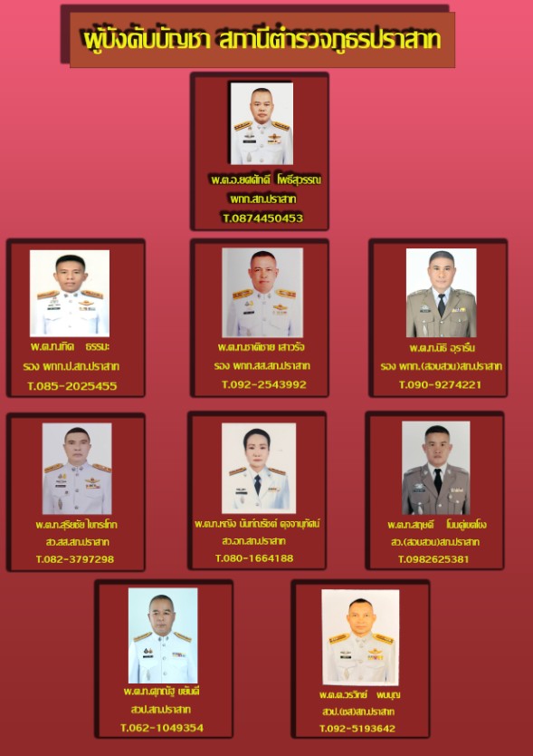1.สายตรวจรถยนต์ (ร้อยเวร20) รับผิดชอบในเขตอำเภอปราสาท2.สายตรวจ จยย เขต1 ในเขตเทศบาลตำบลกังเเอน ฝั่งทิศตะวันออก3.สายตรวจ จยย เขต2 ในเขตเทศบาลตำบลกังเเอน ฝั่งทิศตะวันตก 4.สายตรวจตำบลกังแอน รับผิดชอบตำบลกังแอน จำนวน 18 หมู่บ้าน5.สายตรวจตำบลโคกสะอาด รับผิดชอบตำบลโคกสะอาด จำนวน 20 หมู่บ้าน6.สายตรวจตำบลหนองใหญ่ รับผิดชอบตำบลหนองใหญ่ จำนวย 17 หมู่บ้าน7.สายตรวจตำบลบ้านไทร รับผิดชอบตำบลบ้านไทร จำนวน 9 หมู่บ้าน