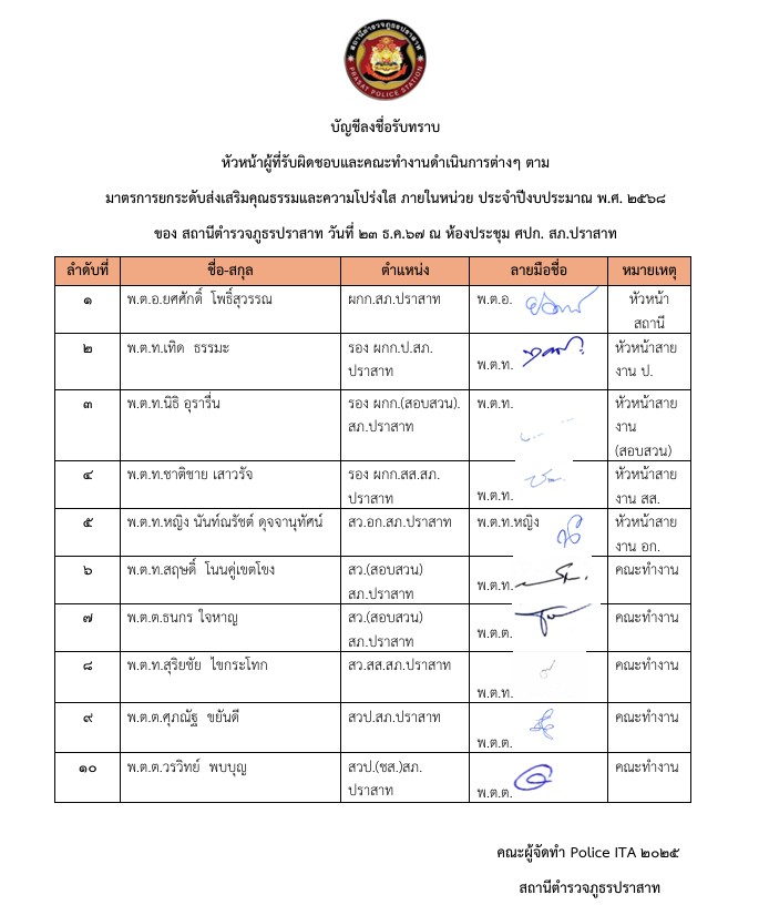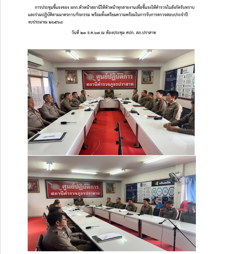 พ.ต.อ.ยศศักดิ์ โพธิ์สุวรรณ ผกก.สภ.ปราสาท ประชุมกำกับติดตาม มอบหมายผู้รับผิดชอบ การยกระดับเผยเเพร่ข้อมูลสาธารณะ (OIT) สถานีตำรวจภูธรปราสาท