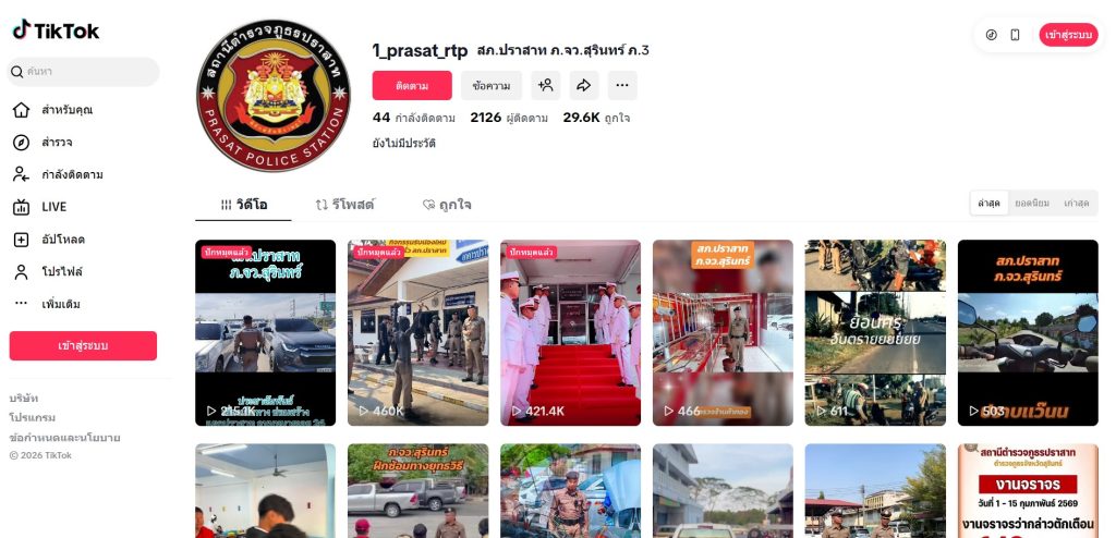 ติดต่อสอบถามผ่าน TIKTOK สถานีตำรวจภูธรปราสาท