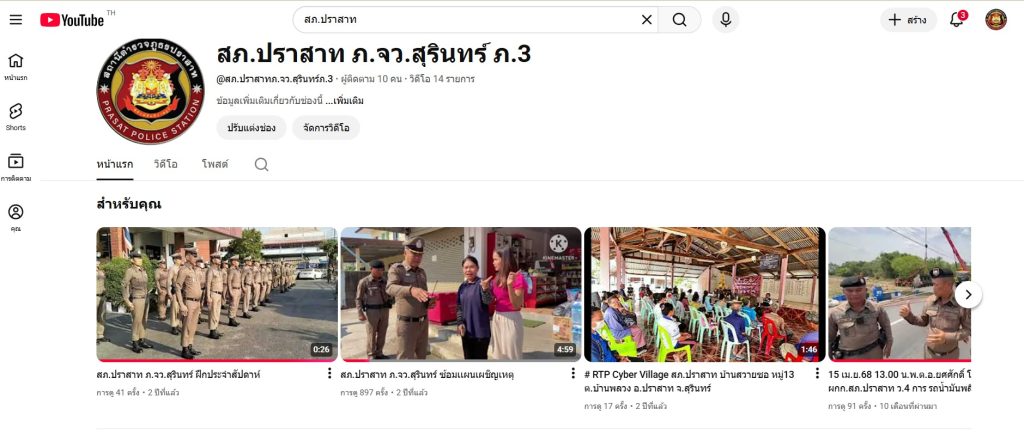 ติดต่อสอบถามผ่าน YOUTUBE สถานีตำรวจภูธรปราสาท